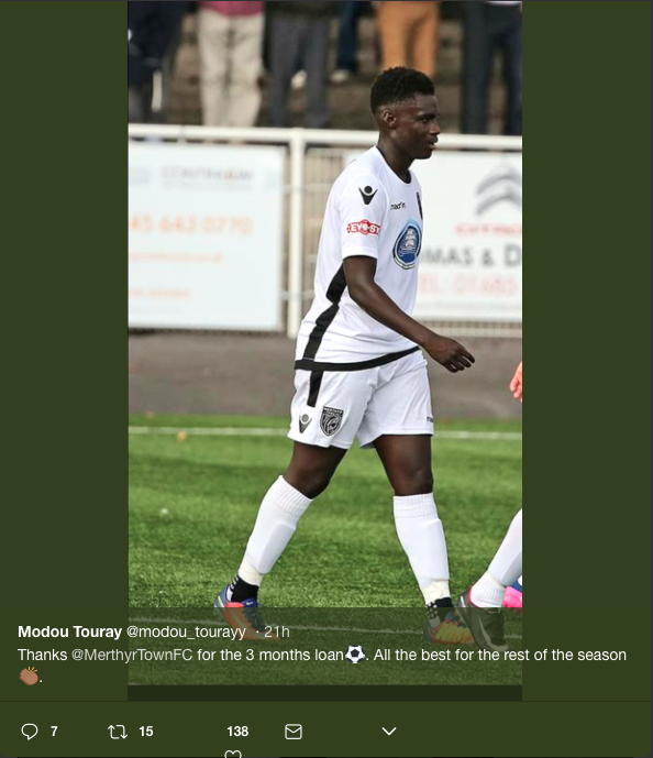 #YoungExile Modou Touray returned to the Newport County first team squad for the Exiles' away fixture against Swindon Town just this weekend. As well as training regularly with Michael Flynn's side after leaving Merthyr at the start of the month. You enjoyed an excellent spell, well done Modou!