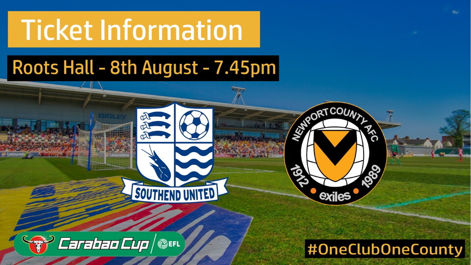 On the 8th August 2017, Newport County AFC will be heading to Roots Hall for the first round of the Carabao Cup. Kick off will be 7.45pm and tickets will be on sale in due course both online and at the ticket office (opening hours can be found here).