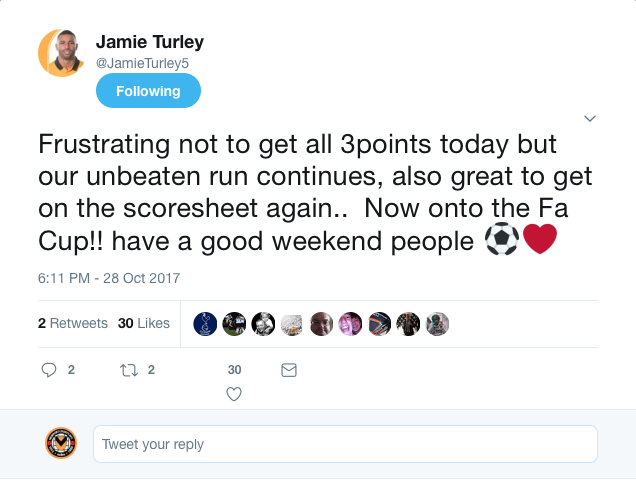 One of those draws was a game Turley started and played 90 minutes, Wood's only game where they kept a clean sheet this month against mid-table Guisley. Keep working hard, Jamie!