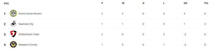 As it stands, the Exiles are bottom of the Group having played just one match. Forest Green Rovers top the group with wins against County and Cheltenham. Swansea City AFC U23s are second after a 1-0 Victory over Cheltenham Town in the last round.
