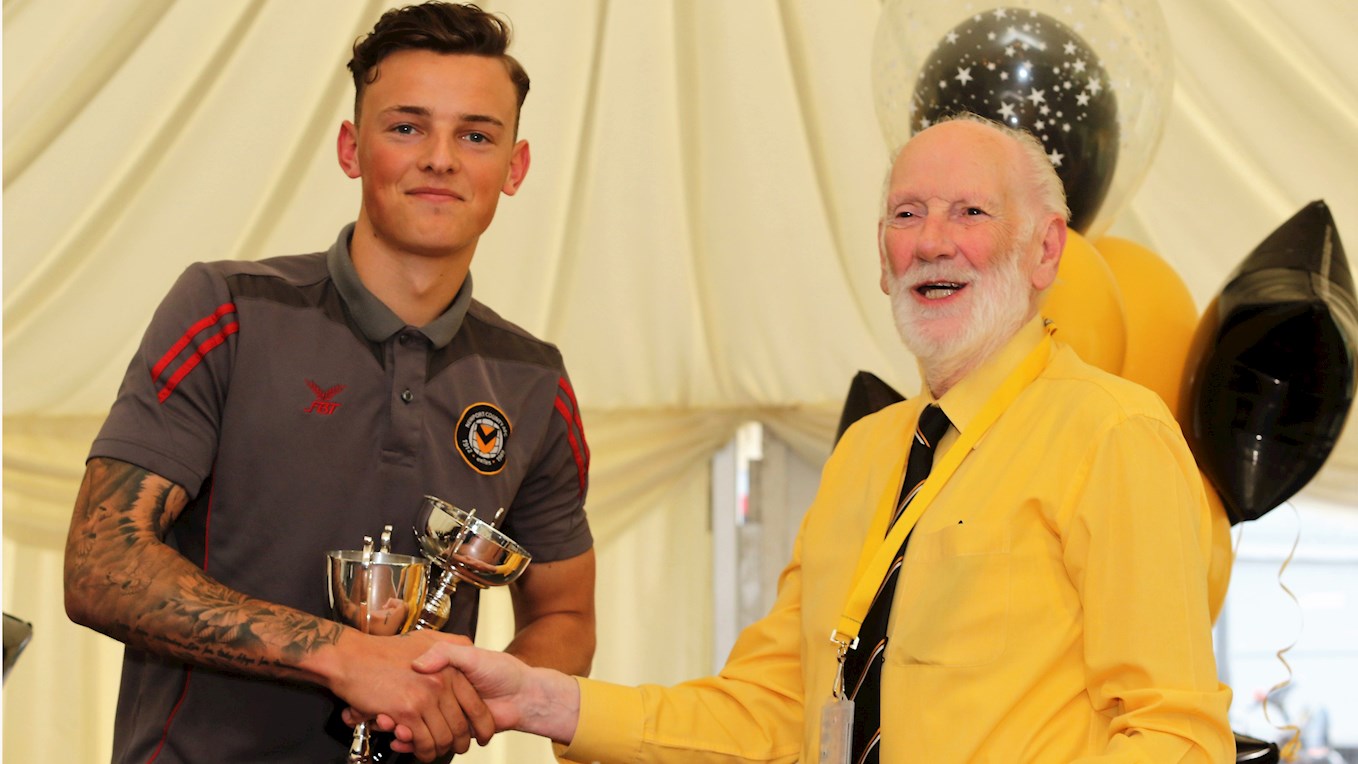 On the way home from each away trip, the Supporters Club Coach vote for their player of the match. The Away Player of the Year is the player who recieves the winning number of votes the highest number of times throughout the season. This year that honour fell to Joe Day who recieved his award from Bob Herrin.