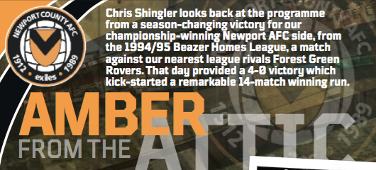Chris Shingler's Amber in the Attic takes us back to a season-changing victory for our championship-winning Newport AFC side, from the 1994/95 Beazer Homes League, a match against our nearest league rivals Forest Green Rovers.