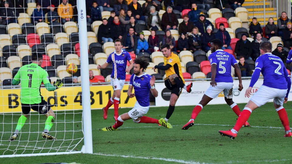A long clearance found Nouble on the right-hand side, before setting up Robbie Willmott to cross. The delivery was inch perfect for Amond just outside the six-yard area, who looped a header over away goalkeeper Christy Pym and into the far corner for his 8th league goal of the campaign.