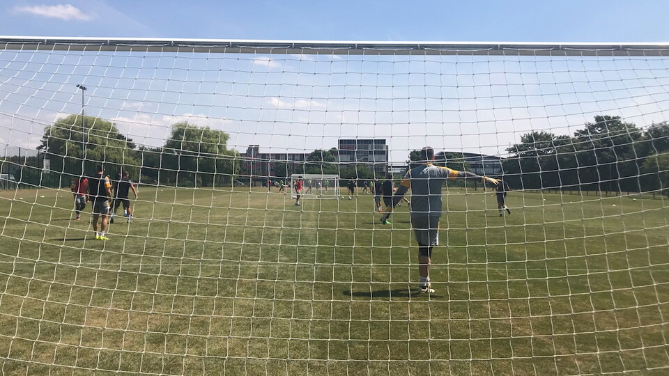 The afternoon's event began with live music by local muscian Jack Perrett (who was one of the supporters invited to be part of the 2018/19 Kit Launch, find out more about him here) and was followed by the arrival of three of the first team - Mickey Demetriou, Keanu Marsh-Brown, and Jamille Matt - donning the smart new kits (see the kits here).