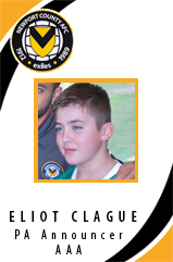 Eliot Clague will be joining us as the PA Announcer! He will be joining Tim Thraves at pitch side to announce the teams and announce the winning numbers of the Half Time Draw.