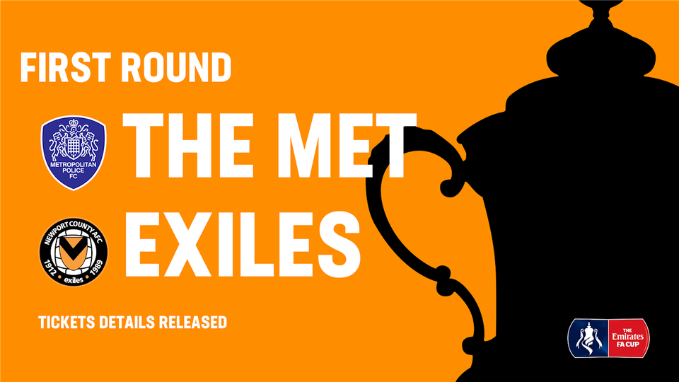 Newport County AFC are delighted to announce that ticket details for our upcoming Emirates FA Cup First Round Tie vs Met Police FC which will take place on the 10th November have been finalised.