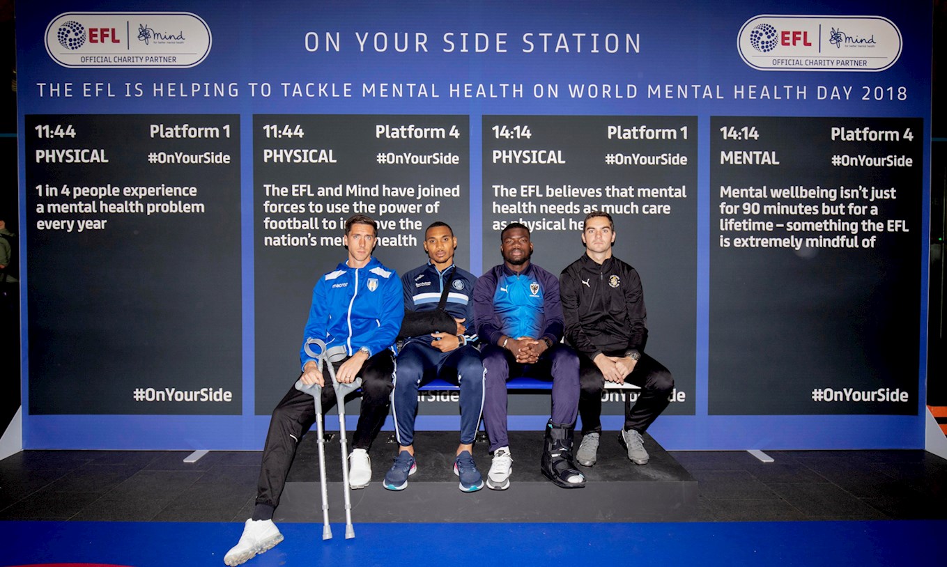 Speaking at today's exhibition at Kings Cross Station, Paul Farmer, CEO of Mind, said: "We all have mental health just as we have physical health and both are equally important to look after. Whether you’re a star striker or season ticket-holder you shouldn’t have to live in fear about opening up and getting support for either your physical or mental health. We’re delighted to have joined with the EFL to create the On Your Side charity Partnership to make sure that no one has to tackle a mental health problem alone. Today, on World Mental Health Day, and all days, Mind and the EFL are On Your Side."