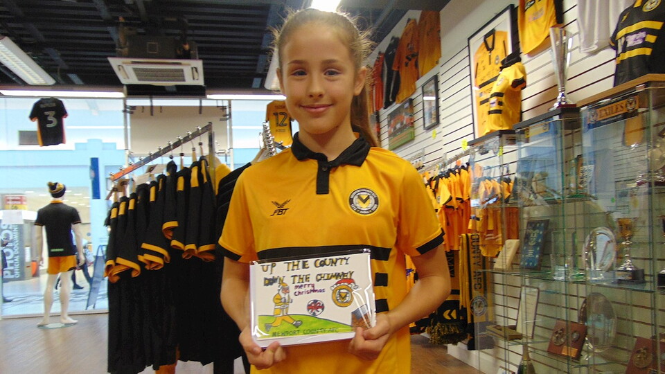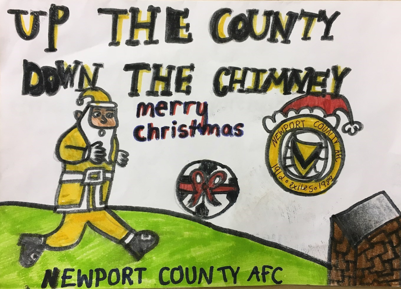 Just under a year ago today, Newport County AFC launched their first ever young fans Christmas Card Design Competition. County fans from across Newport were invited to design a brand-new Newport County AFC Christmas Card in the hopes of winning the chance to have their card sold in the Club shop and be mascot for a match.
