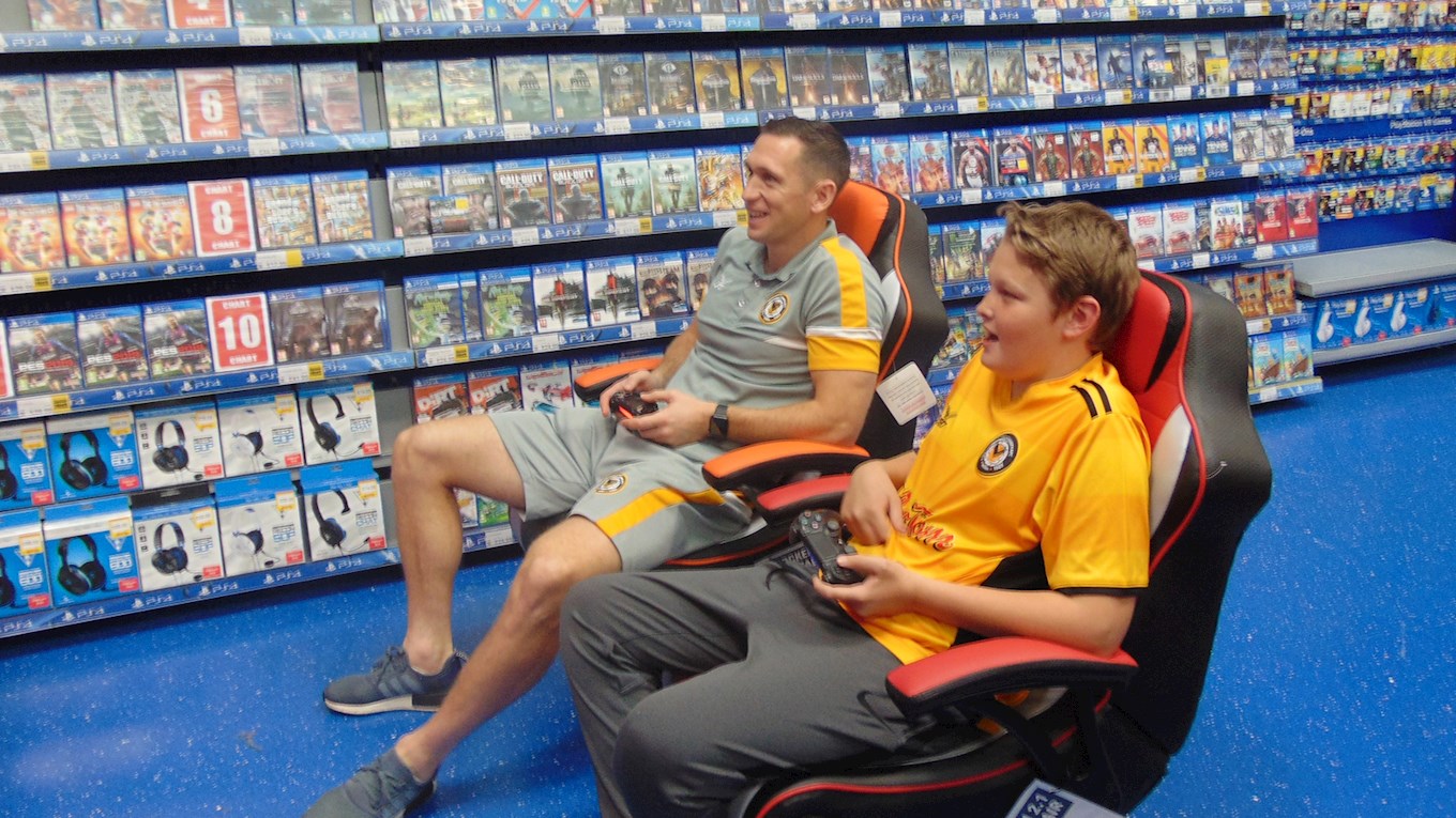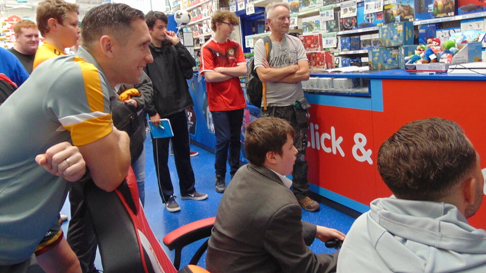 Andrew Crofts and Robbie Willmott would probably both admit that their football skills are better in the real world than the virtual one but they took on some very skillful fans in the specially constructed gaming stations at Smyths Toy Store.