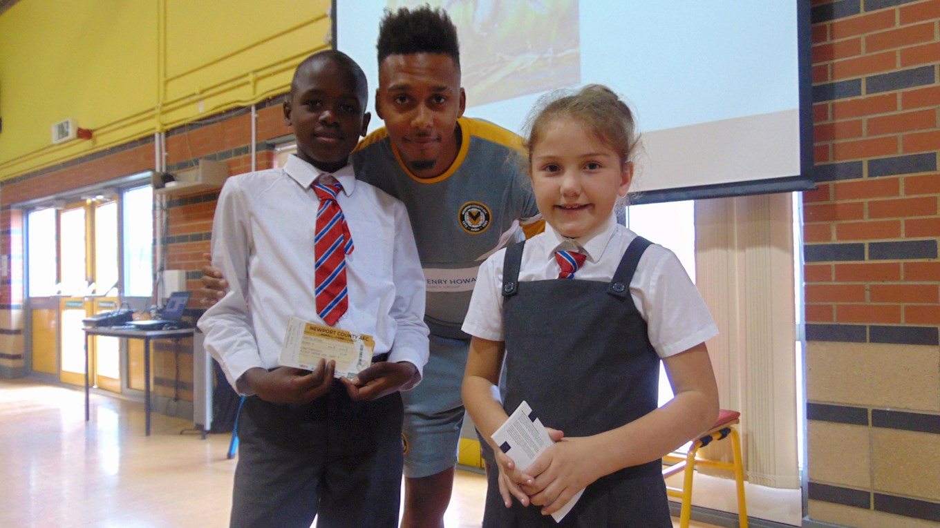 Keanu Marsh-Brown surprised Year 5 students at Maindee Primary School by joining them for afternoon assembly.