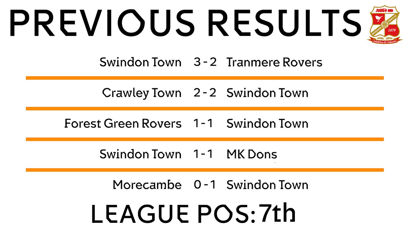 In their next match, the Robins did remarkably well with nine men to hold on for a 2-2 draw at Crawley Town. James Dunne both scored and was then dismissed, alongside another red card for Toumani Diagouraga. Keshi Anderson also scored for Swindon on that occasion, but the points were shared after a double from Ollie Palmer.