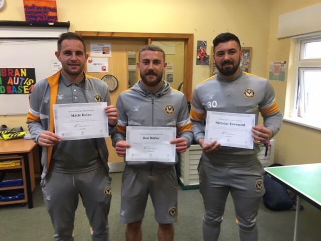 All three players joined in with several indoor activities with the students, before taking the online ASD Aware test, proudly displaying their certificates in the main photo above.
