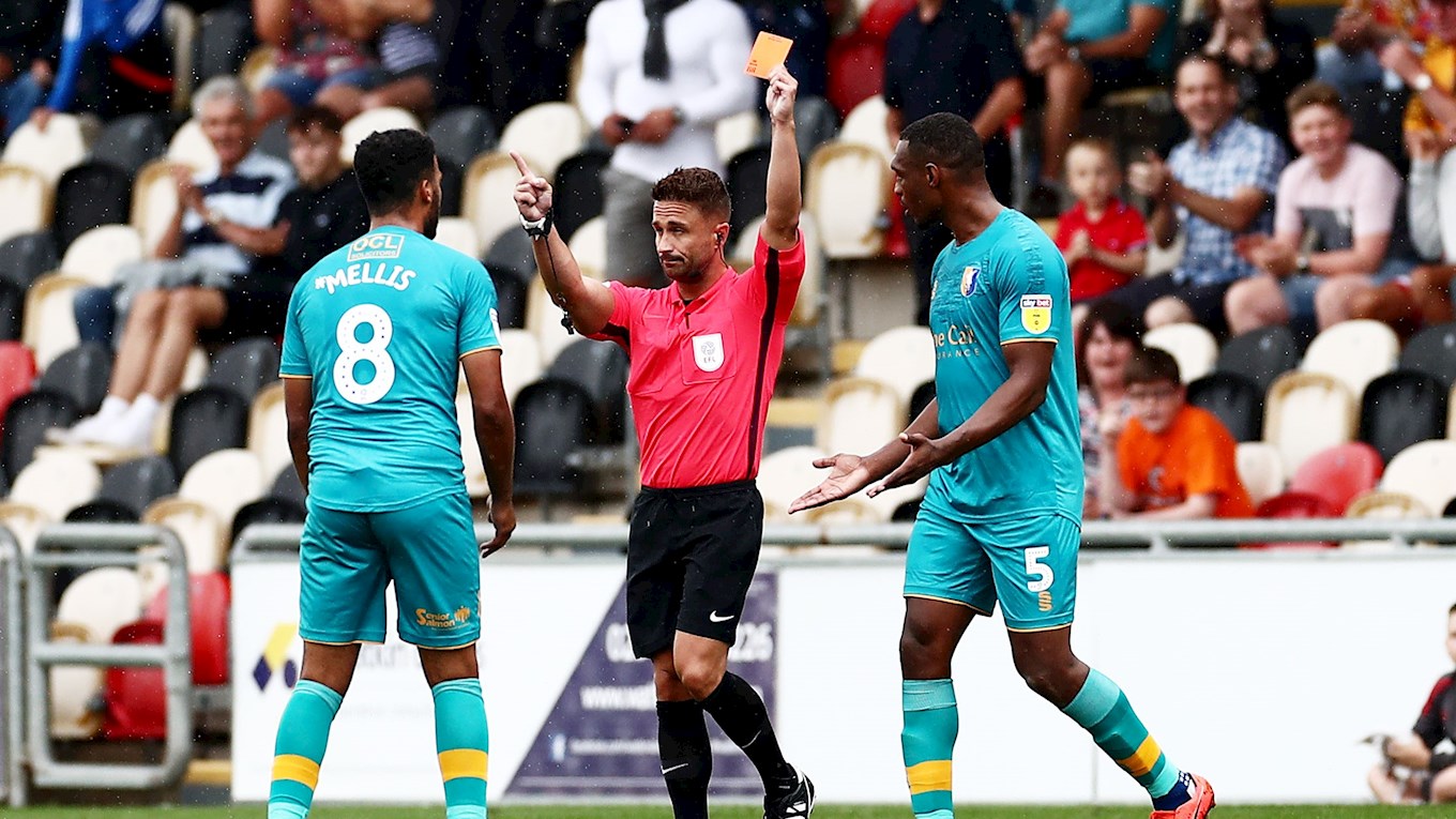 He has already presided over a County fixture this season having been the man in the middle during the opening day 2-2 draw with Mansfield Town on August 3rd. Seven yellows were awarded in total, Padraig Amond and Joss Labadie from a County perspective, while Jacob Mellis was dismissed for the visitors.