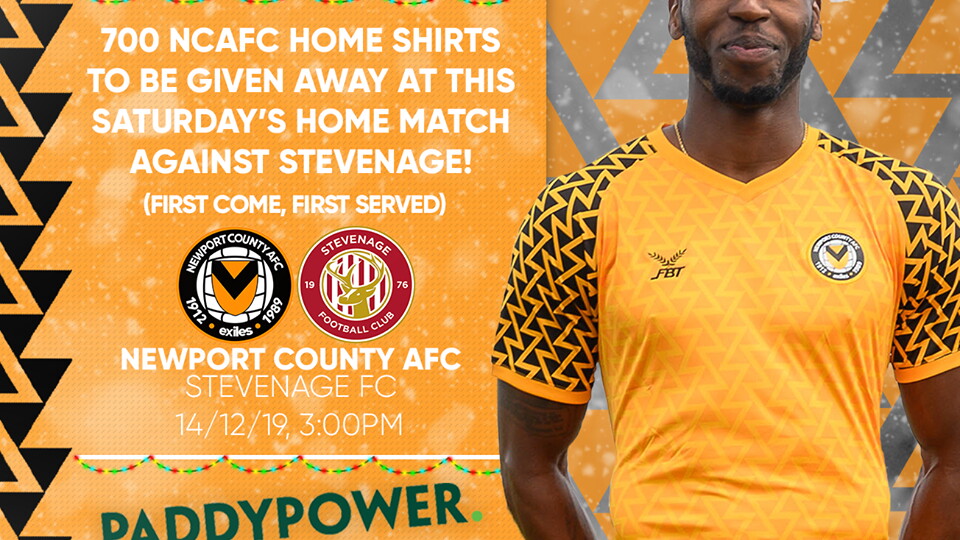 700 lucky County fans will be able to get their hands on a free Newport County AFC home shirt (on a first come, first served basis) at this weekend's Sky Bet League Two clash against Stevenage with a valid match ticket thanks to Paddy Power.