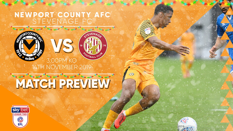 Newport County AFC will be looking to mark their return to Rodney Parade with all three points when they entertain Stevenage on Saturday. After three games on the road in three different competitions, County will be hoping to use home comforts to their advantage on matchday, while the visitors will be desperate for all three points in order to give themselves a lift ahead of the hectic Festive period.