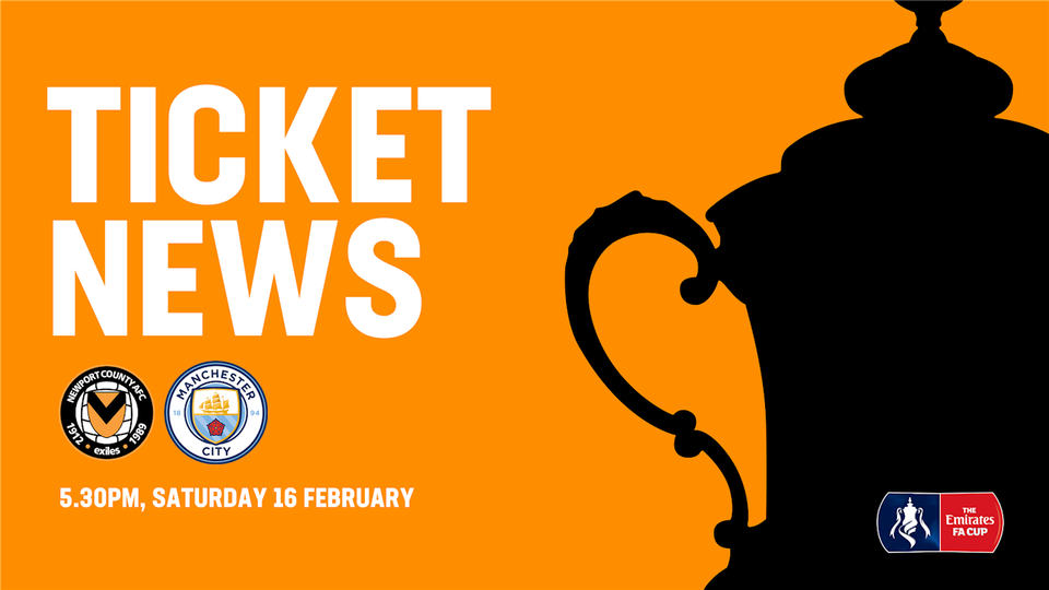 Newport County AFC will play Manchester City in the Fifth Round of the Emirates FA Cup at Rodney Parade at 5.30pm kick-off on Saturday 16 February 2019.