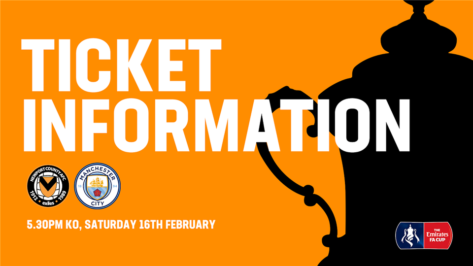 Newport County AFC will play Manchester City FC in the Fifth Round of the Emirates FA Cup at Rodney Parade at 5.30pm on Saturday 16th February.