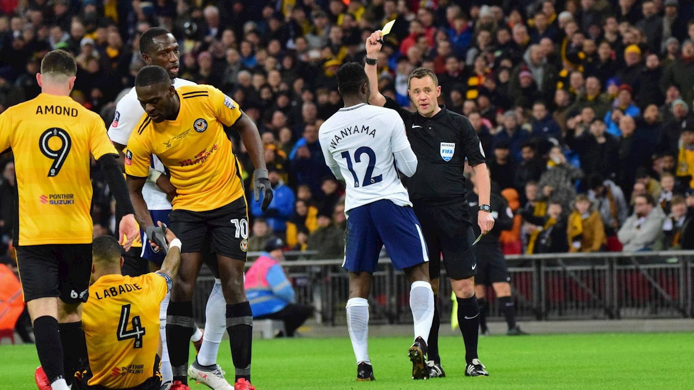 He took charge of just the one game last season and that came at this very stage of the competition as County lost 2-0 against Tottenham Hotspur at Wembley on 7th February 2018. Victor Wanyama was the only player booked.