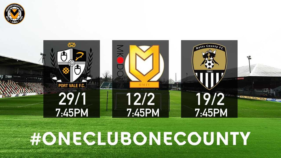 Following communications between all Clubs and the EFL, Newport County AFC can confirm that our Sky Bet League Two fixtures against Port Vale, MK Dons and Notts County have been re-arranged.