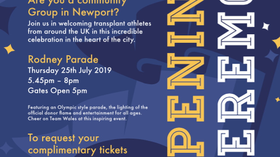 The Westfield Health British Transplant Games are coming to Newport this month - and organisers are inviting community groups in the area to play a part of the opening ceremony on July 25.