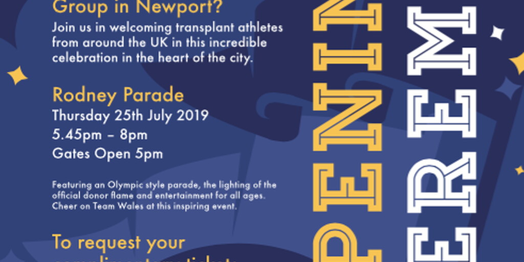 The event is supported by Westfield Health, Welsh Government, Newport City Council, Newport Live, the local health boards across Wales, NHS Blood and Transplant, Kidney Care UK, Anthony Nolan Register, Donor Family Network and Believe Organ Donor Support. Further sponsors include Friars Walk, Icon Design, Rodney Parade and the Celtic Manor Resort.