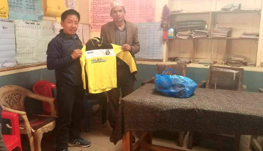 As part of the Classrooms in the Clouds Nepal (CITCNepal) initiative, this time Richard took over 70 shirts, thanks to the generous help of Newport County AFC Academy Lead Coach for Under-7's - 16's age groups, Darren Broadribb on behalf of the Club.