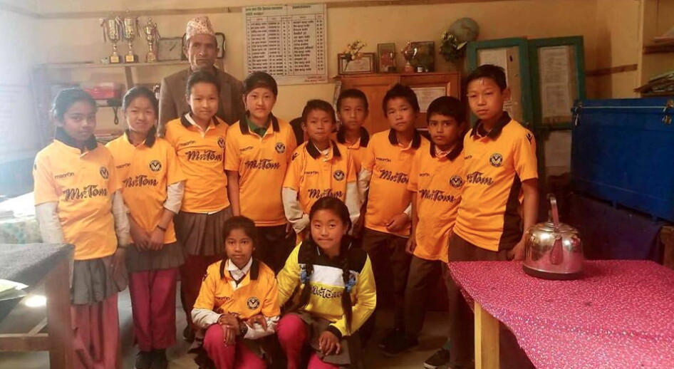 Shree Sagarmatha Secondary School in the small village of Bung, Nepal, received the shirts thanks to County fan Richard Jenkins who was taking a third trip to Nepal in aid of the Classrooms in the Clouds Nepal (CITCNepal) charity.