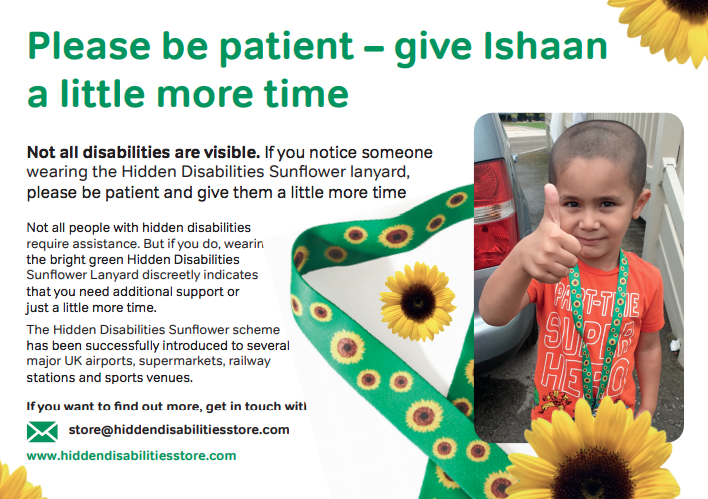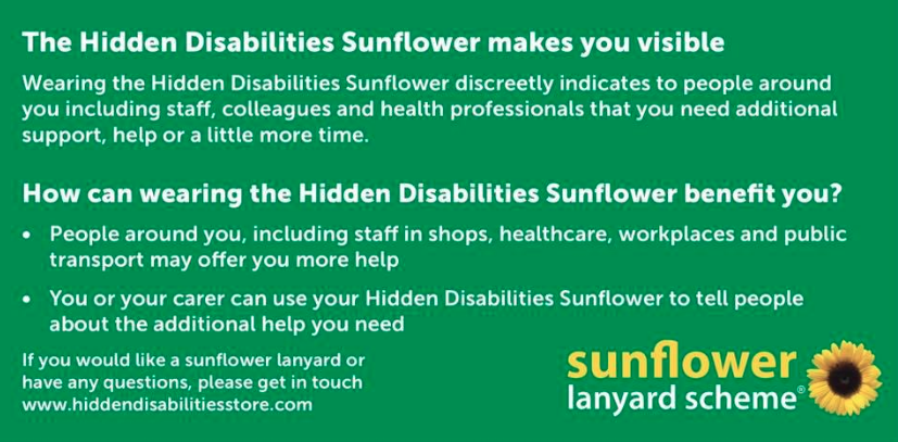Wearing the Sunflower Lanyard is a discreet way of indicating to others around you that help may be required, and that help may be different for each person.