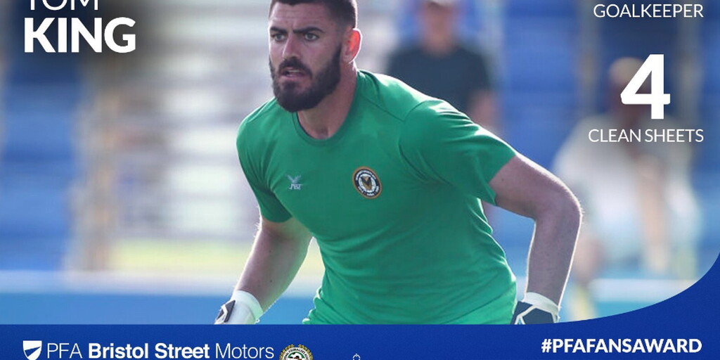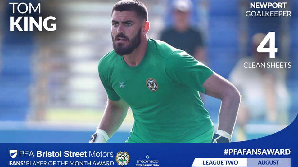 Goalkeeper Tom King, who kept four clean sheets in the League last month, has been nominated for the PFA Bristol Street Motors Player of the Month Award for August.
