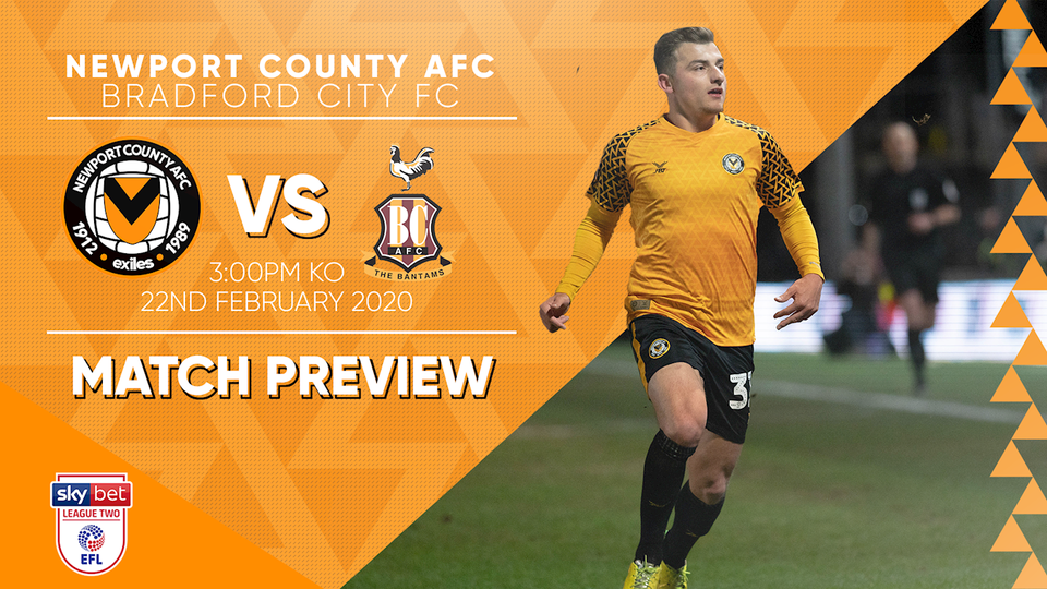 Newport County AFC will be looking to put midweek penalty heartbreak behind them when they take on Play-Off chasing Bradford City at Rodney Parade. This will be just the second meeting of the sides after their meeting earlier in the season at Valley Parade.