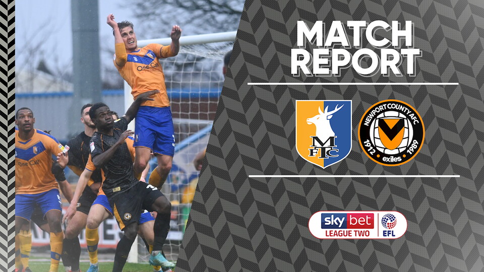 Newport County AFC put in a battling display but fell to a narrow defeat to Mansfield Town at a wet and windy One Call Stadium.