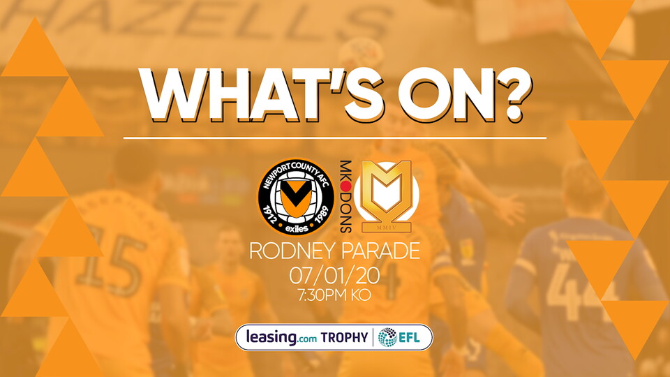 Find out everything that is going on this Tuesday at Rodney Parade as we take on Sky Bet League One outfit MK Dons in the Third Round of the Leasing.Com Trophy.