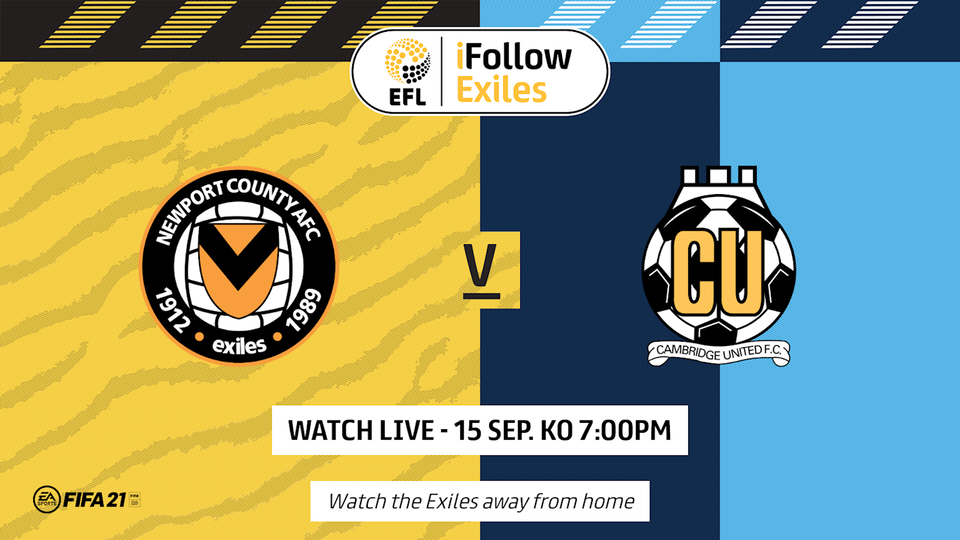 Newport County AFC supporters can watch our Carabao Cup second round clash against Cambridge United for £10.