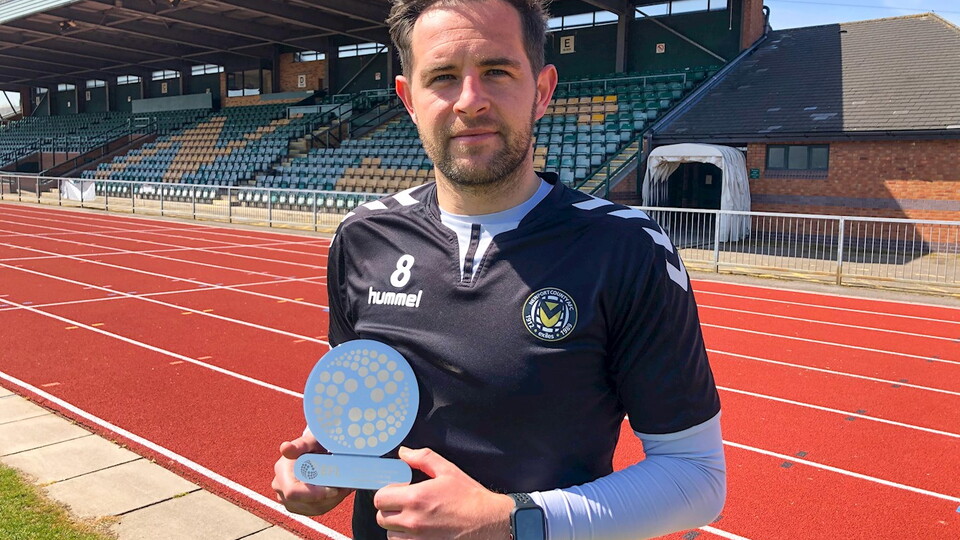 Newport County AFC's Matty Dolan received his Sky Bet League Two PFA Player in the Community award on Friday.