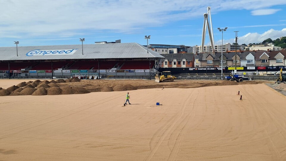 “We are close to completing the exciting process of rebuilding the pitch back up, now the sand layer is completely down, and the focus will soon switch to the pitch and new playing surface.”