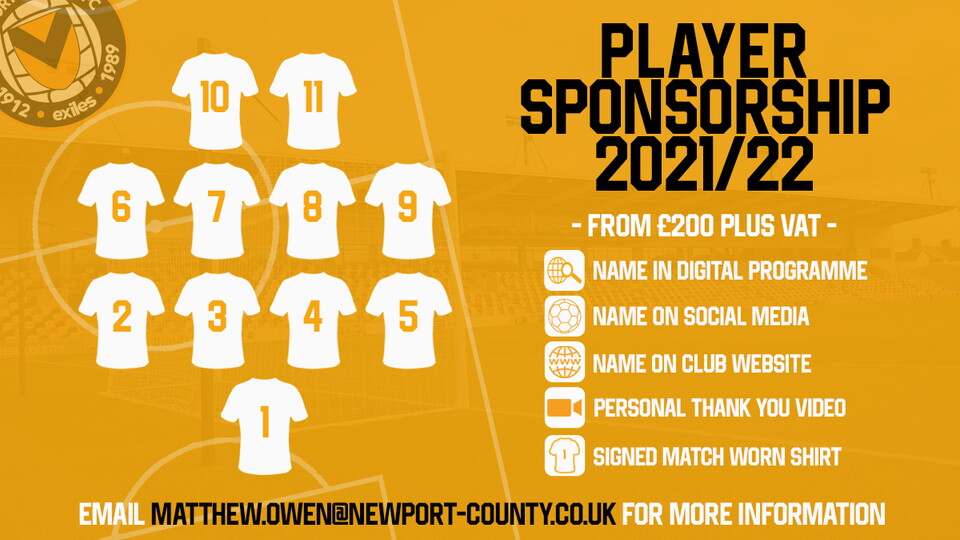 Newport County AFC player sponsorships are now available ahead of the 2021/22 Sky Bet League Two campaign.
