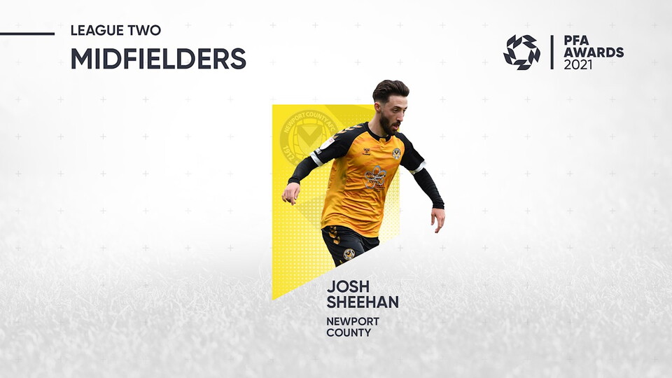 Newport County AFC midfielder Josh Sheehan has been named in the PFA Sky Bet League Two Team of the Year.