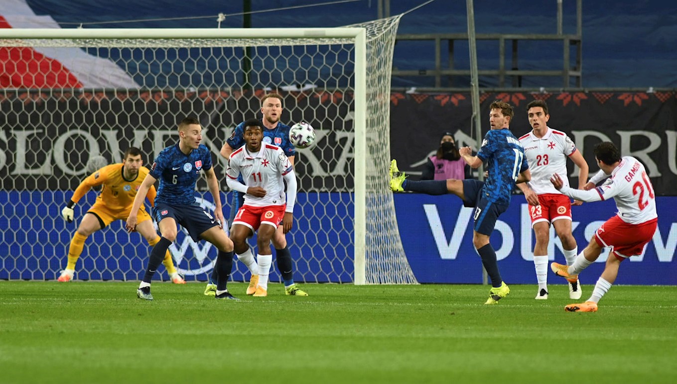 The midfielder, who was an unused substitute in Malta's opening qualifier against Russia, played 68 minutes against the Slovaks and scored a brilliant curling effort to put his side in front.