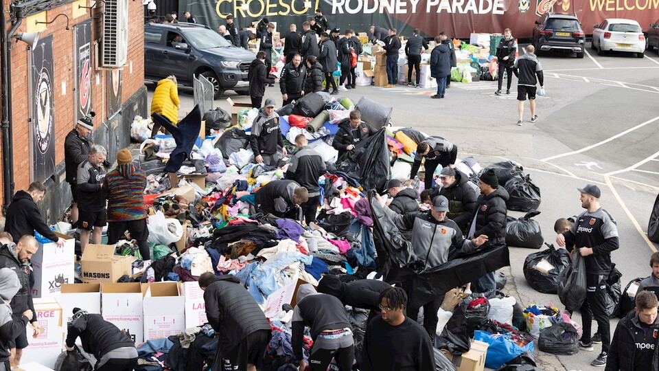 Players and staff from both clubs came together earlier this week to help sort and pack emergency supplies that are being sent from Newport to Poland.