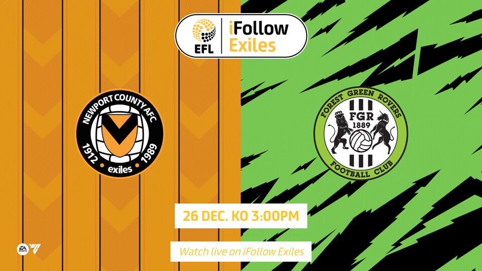 Watch Newport's clash with Forest Green Rovers live on iFollow Exiles from 2pm on Tuesday, December, 26 (3pm).