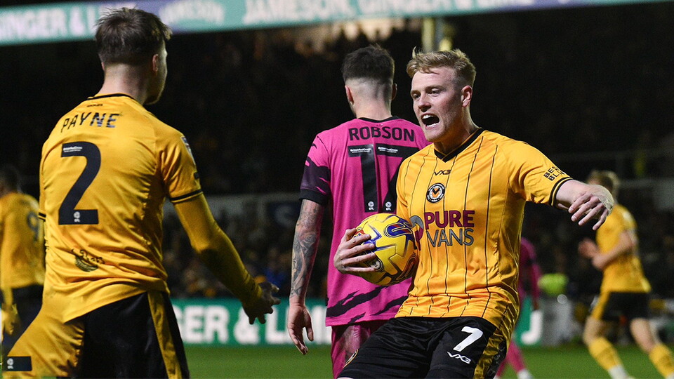 Newport County: Townsend, Delaney (C), Clarke, Baker (Palmer-Houlden 37’), Payne (Lewis 89’), McLoughlin, Bennett, Morris, Charsley (Bondswell 77’), Evans, Bogle.