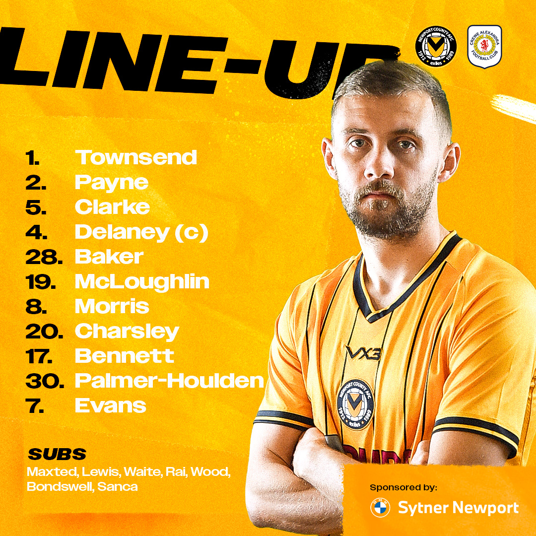 Newport County: Townsend, Delaney (C), Clarke, Baker, Payne, McLoughlin, Bennett, Morris, Charsley, Evans, Palmer-Houlden.