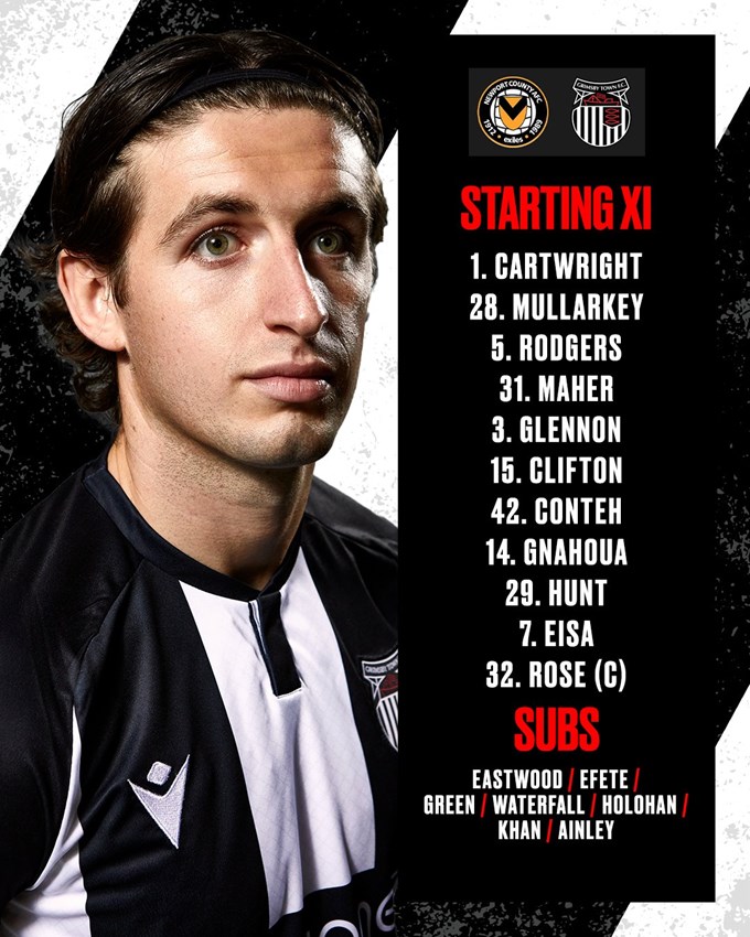 Grimsby Town: Cartwright, Mullarkey, Rodgers, Conteh, Eisa, Gnahoua, Rose (C), Hunt, Clifton, Maher, Glennon.