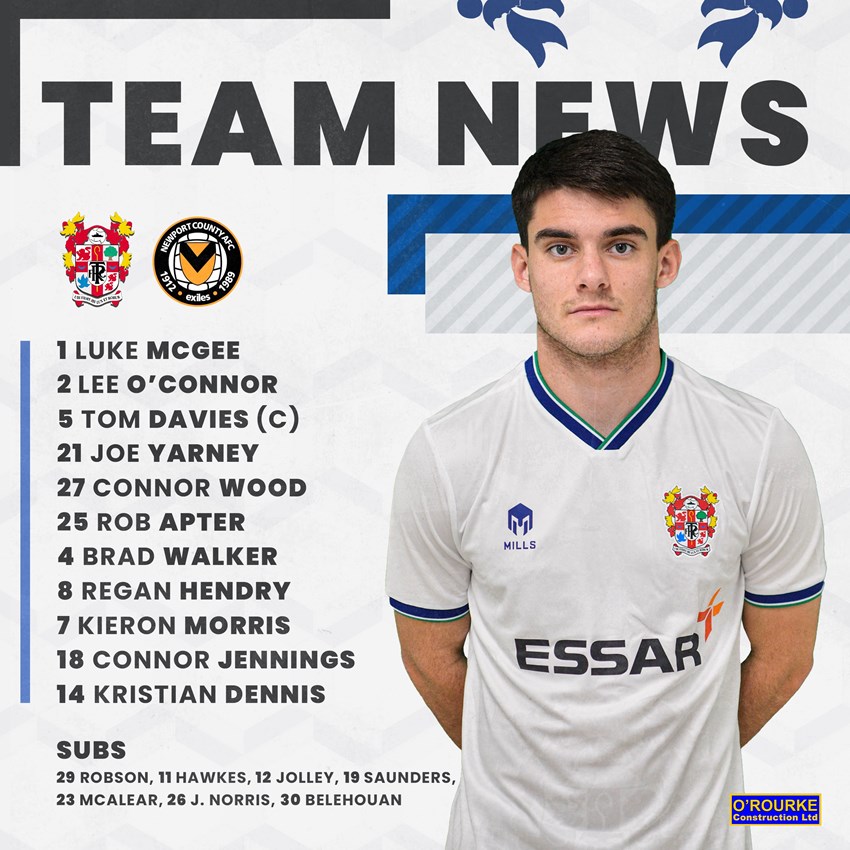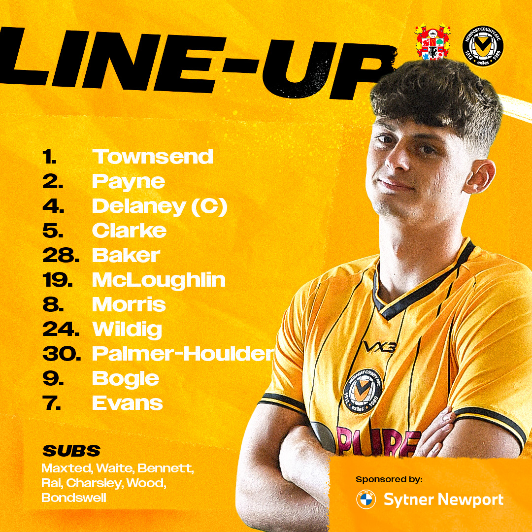 Newport County: Townsend, Payne, Delaney (C), Clarke, McLoughlin, Baker, Wildig, Morris, Palmer-Houlden, Bogle, Evans.