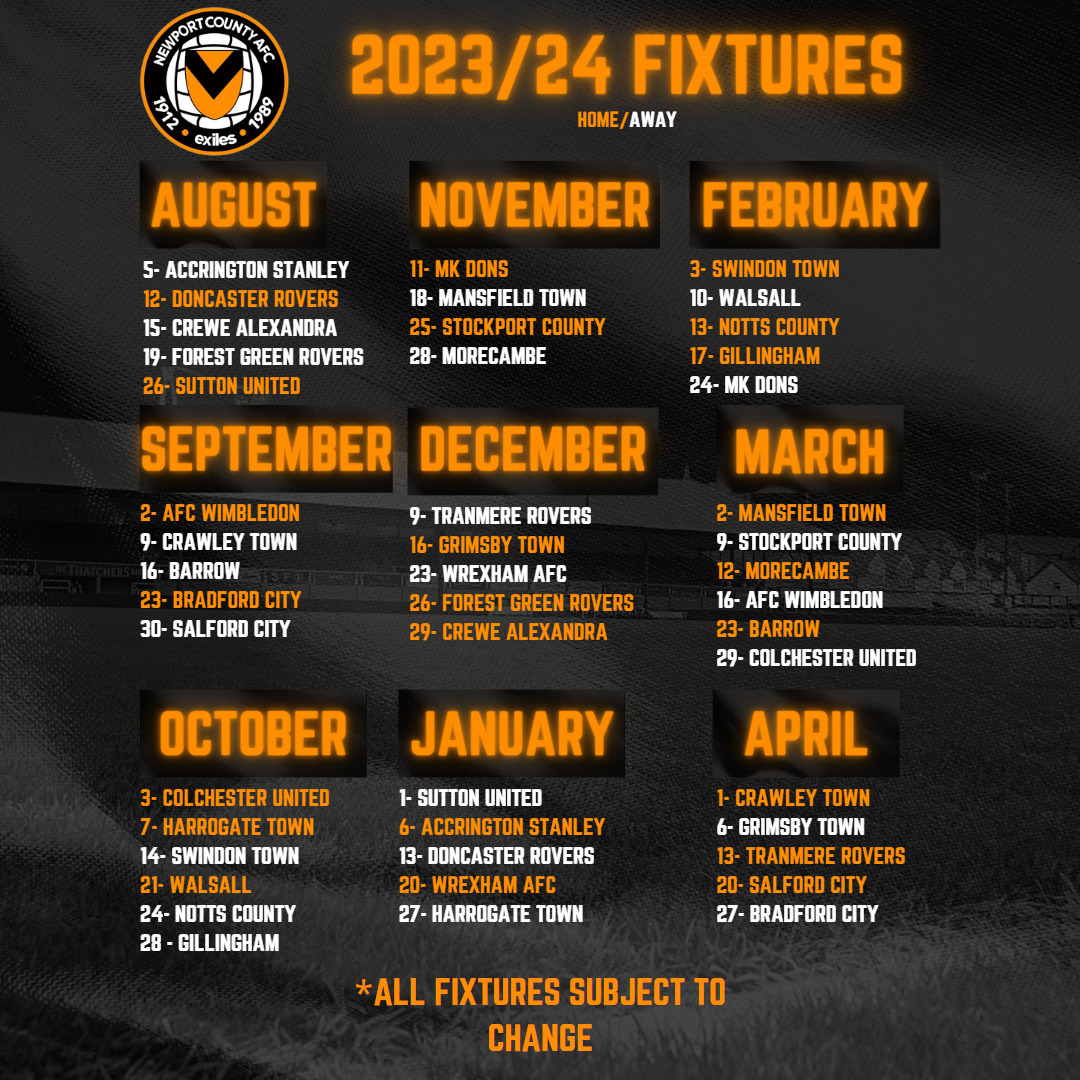 Below you can find key dates for the upcoming season, including a full 2023/24 fixture list for all Newport County AFC fixtures.