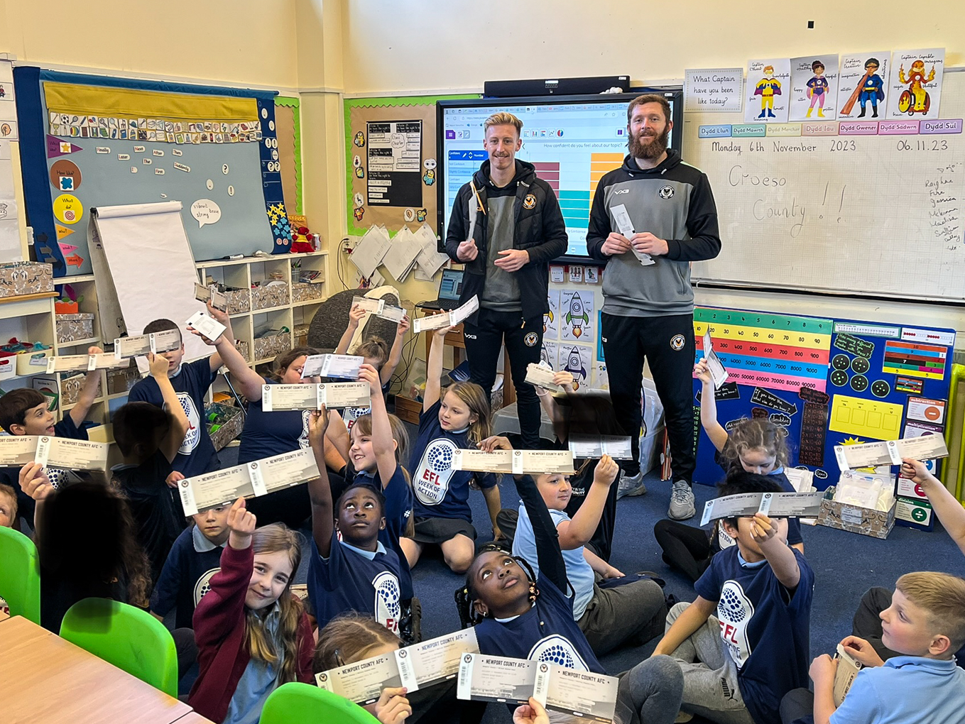 On Monday 6th November Newport Players and County in the Community visited Malpas Court Primary School to meet with pupils and hand out tickets for our next fixture.