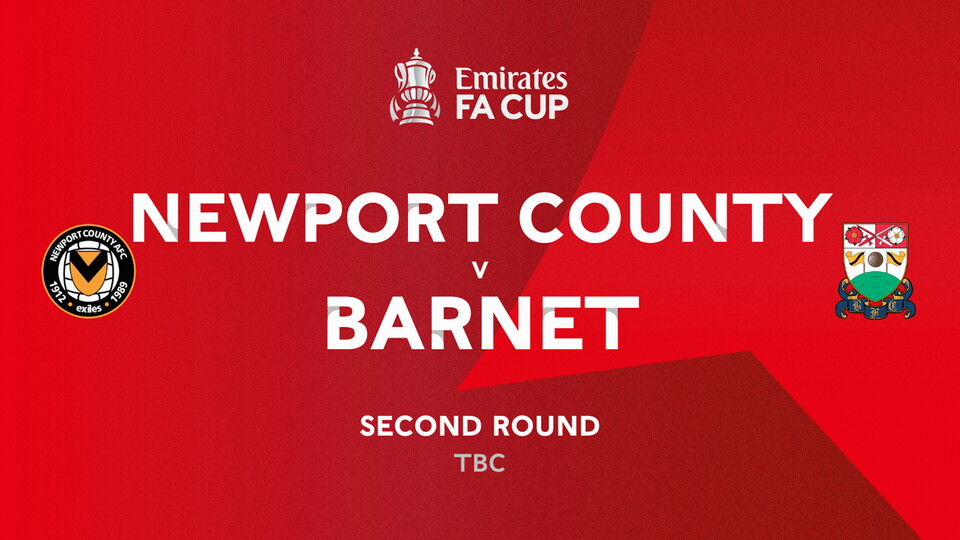 Following the conclusion of the Emirates FA Cup round two draw, Newport County can confirm that we will host Barnet Football Club in round two of the FA Cup.