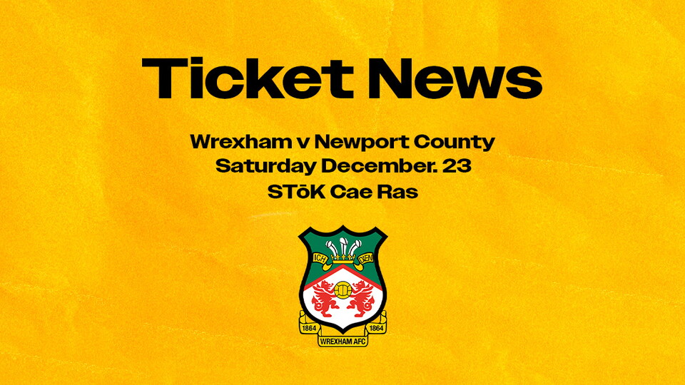 Tickets for our trip to North Wales to face Wrexham on Saturday, December 23 will go on sale tomorrow (Wednesday November 29.) at 10am.