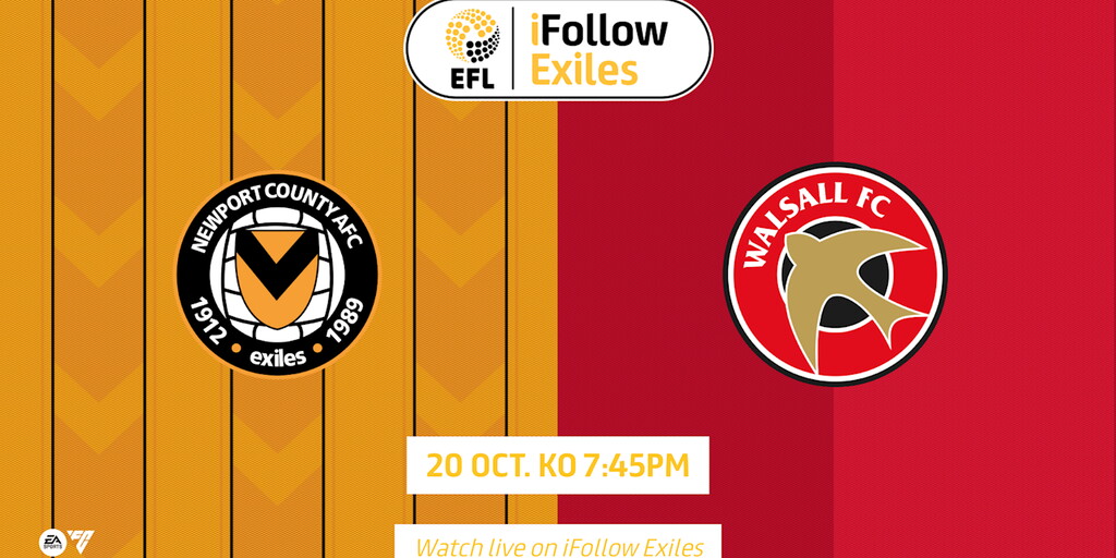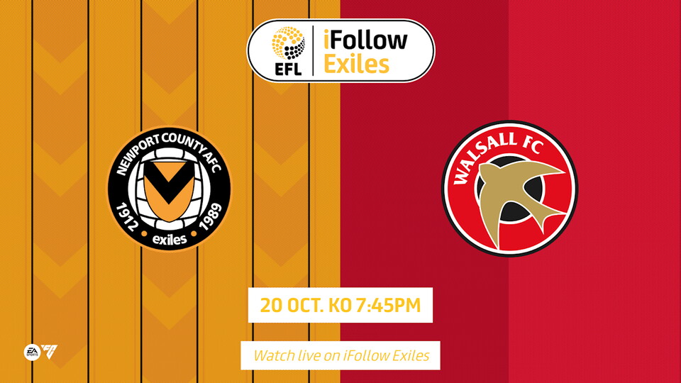 Newport County host Mat Sadler's Walsall at Rodney Parade on October 19 (7.45pm) and you can watch it live on iFollow for just £10.