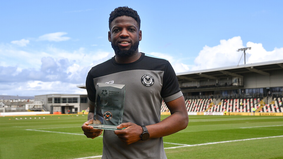 Newport County attacker Offrande Zanzala has been presented with the Professional Footballers Association’s Community Champion Award.
